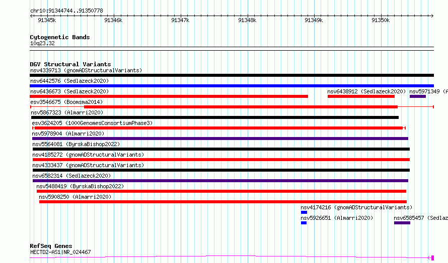Variant DetailsVariant: esv3546675| Internal ID | 18747751 | | Landmark | | | Location Information | | | Cytoband | 10q23.32 | | Allele length | | Assembly | Allele length | | hg38 | 6035 | | hg19 | 6035 |
