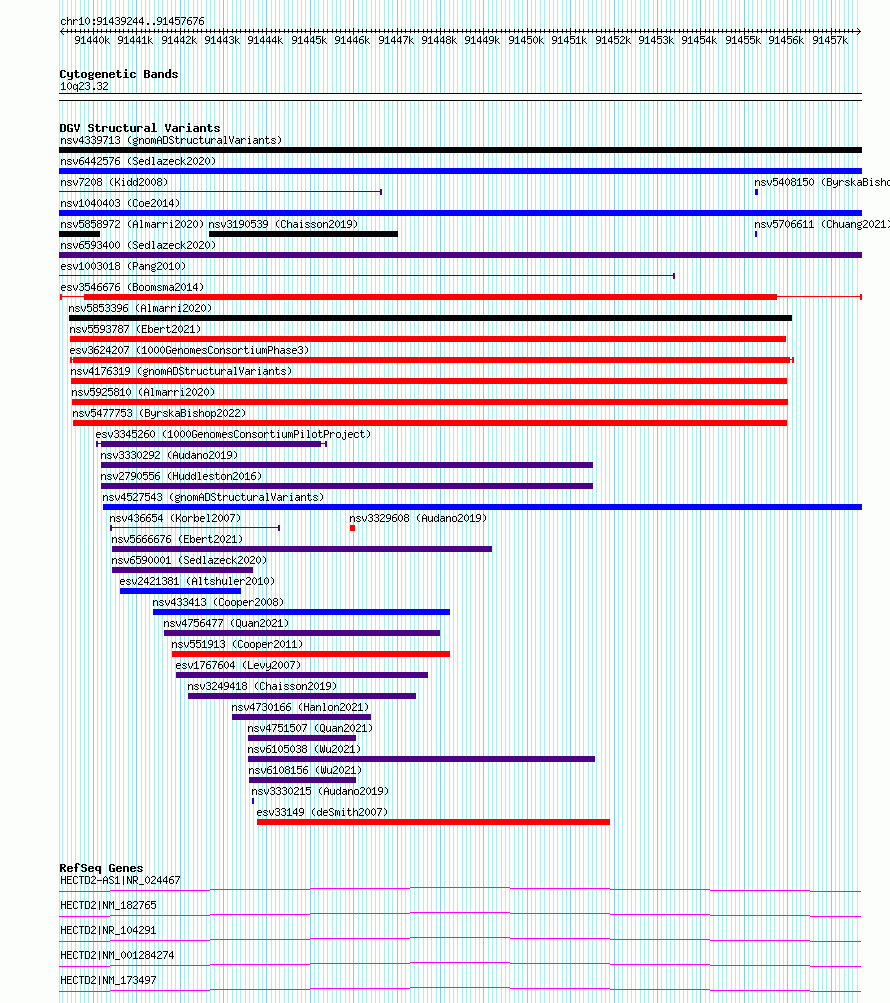 Variant DetailsVariant: esv3546676| Internal ID | 18747752 | | Landmark | | | Location Information | | | Cytoband | 10q23.32 | | Allele length | | Assembly | Allele length | | hg38 | 18433 | | hg19 | 18433 |