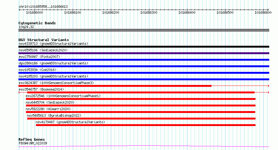 Variant DetailsVariant: esv3546757| Internal ID | 18747833 | | Landmark | | | Location Information | | | Cytoband | 10q24.32 | | Allele length | | Assembly | Allele length | | hg38 | 656 | | hg19 | 656 |