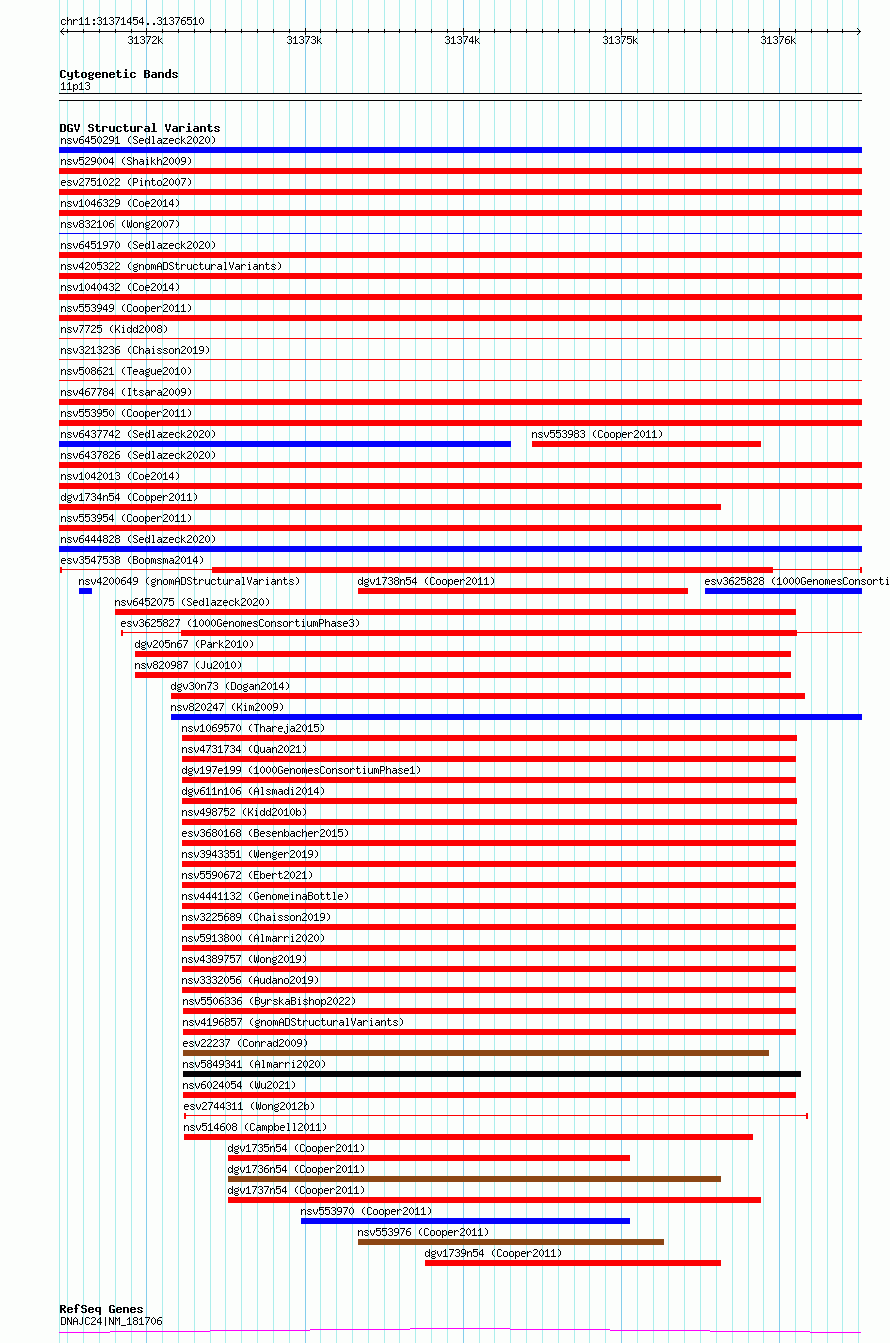 Variant DetailsVariant: esv3547538| Internal ID | 18748614 | | Landmark | | | Location Information | | | Cytoband | 11p13 | | Allele length | | Assembly | Allele length | | hg38 | 5057 | | hg19 | 5057 |