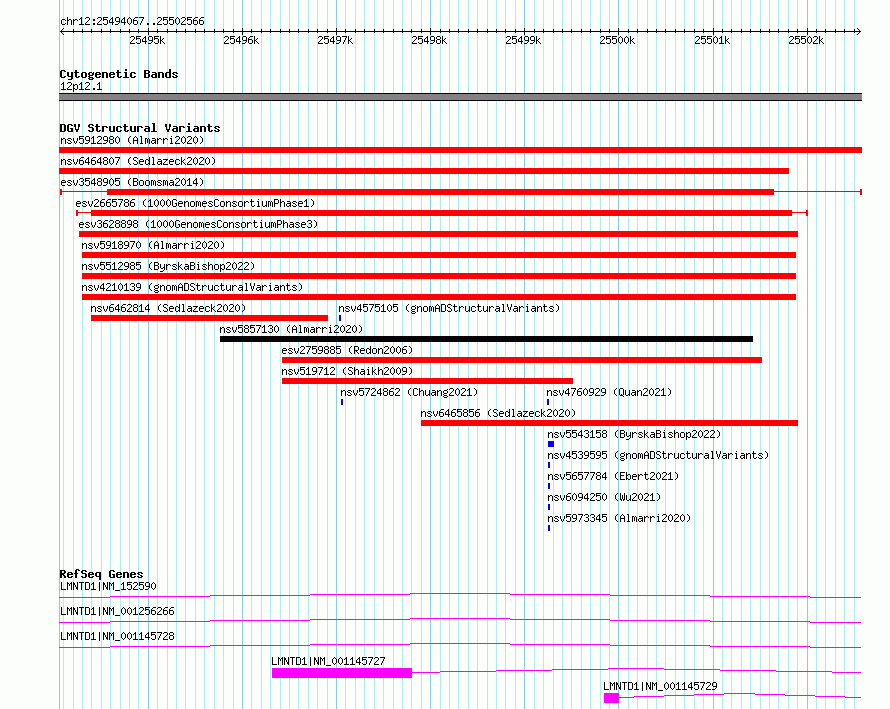 Variant DetailsVariant: esv3548905| Internal ID | 18749981 | | Landmark | | | Location Information | | | Cytoband | 12p12.1 | | Allele length | | Assembly | Allele length | | hg38 | 8500 | | hg19 | 8500 |