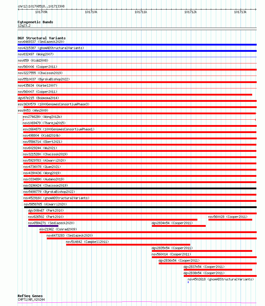 Variant DetailsVariant: esv3549691| Internal ID | 18750767 | | Landmark | | | Location Information | | | Cytoband | 12q23.2 | | Allele length | | Assembly | Allele length | | hg38 | 4791 | | hg19 | 4791 |