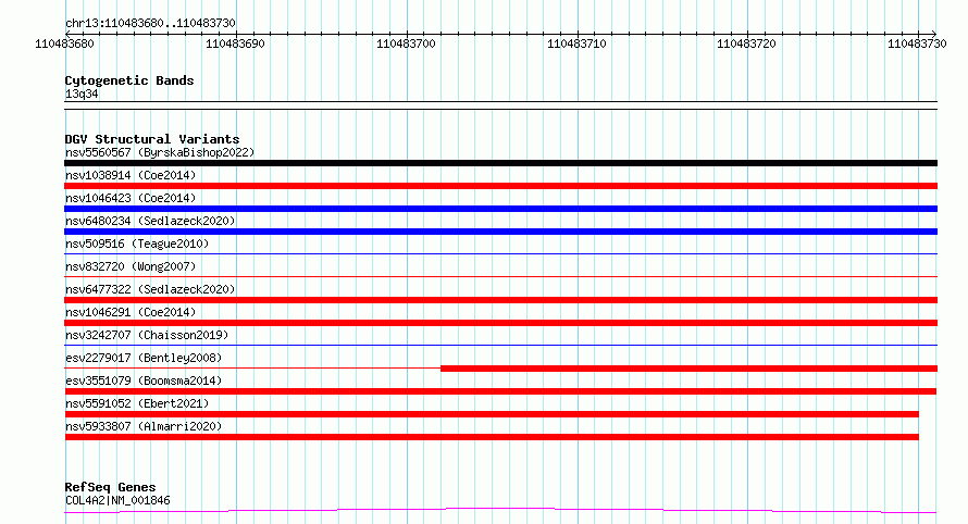 | | Variant Type | CNV deletion | | Copy Number | | | Allele State | | | Allele Origin | | | Probe Count | | | Validation Flag | | | Merged Status | M | | Merged Variants | | | Supporting Variants | essv9749826 | | Samples | | | Known Genes | COL4A2 | | Method | Sequencing | | Analysis | | | Platform | Illumina HiSeq 2000 | | Comments | | | Reference | Boomsma_et_al_2014 | | Pubmed ID | 23714750 | | Accession Number(s) | esv3551079
