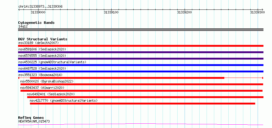 Variant DetailsVariant: esv3551323| Internal ID | 18752399 | | Landmark | | | Location Information | | | Cytoband | 14q12 | | Allele length | | Assembly | Allele length | | hg38 | 334 | | hg19 | 334 |