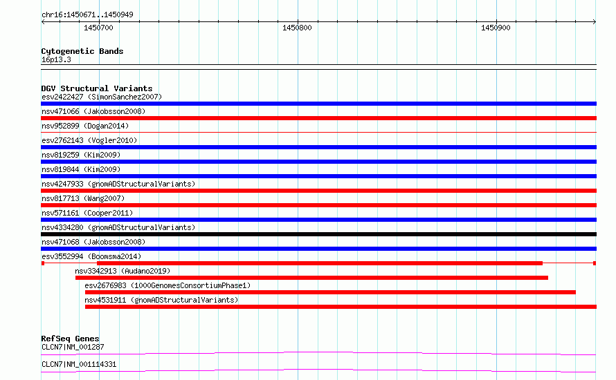 Variant DetailsVariant: esv3552994| Internal ID | 18407384 | | Landmark | | | Location Information | | | Cytoband | 16p13.3 | | Allele length | | Assembly | Allele length | | hg38 | 279 | | hg19 | 279 |