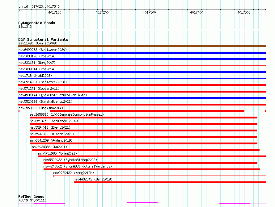Variant DetailsVariant: esv3553033| Internal ID | 18754109 | | Landmark | | | Location Information | | | Cytoband | 16p13.3 | | Allele length | | Assembly | Allele length | | hg38 | 523 | | hg19 | 523 |