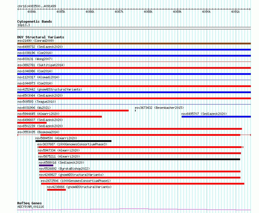 Variant DetailsVariant: esv3553035| Internal ID | 18754111 | | Landmark | | | Location Information | | | Cytoband | 16p13.3 | | Allele length | | Assembly | Allele length | | hg38 | 8000 | | hg19 | 8000 |