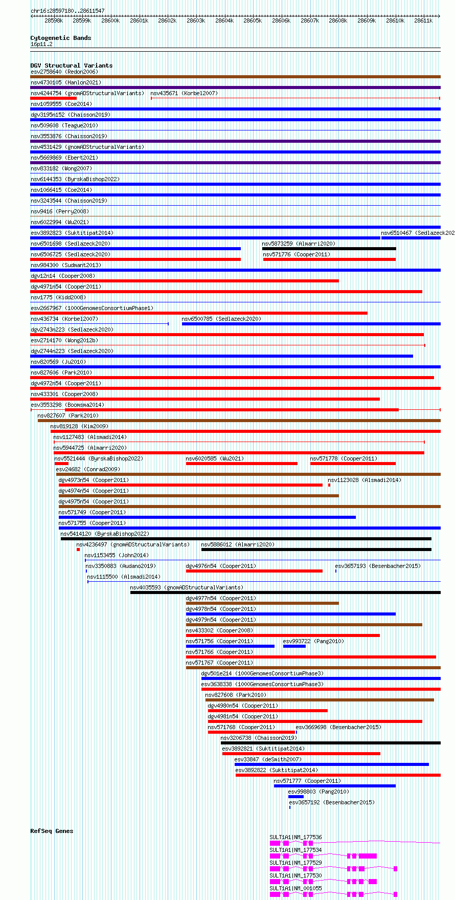 Variant DetailsVariant: esv3553298| Internal ID | 18754374 | | Landmark | | | Location Information | | | Cytoband | 16p11.2 | | Allele length | | Assembly | Allele length | | hg38 | 14368 | | hg19 | 14368 |