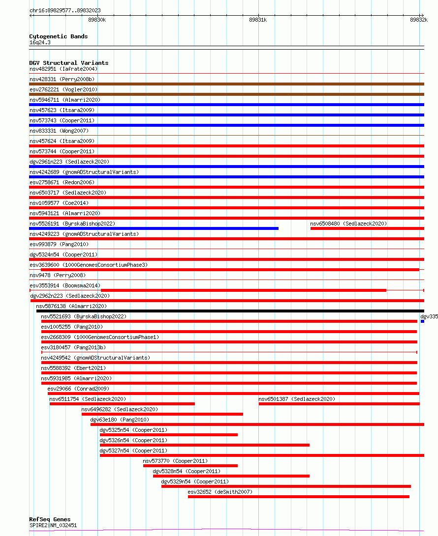 Variant DetailsVariant: esv3553914| Internal ID | 18754990 | | Landmark | | | Location Information | | | Cytoband | 16q24.3 | | Allele length | | Assembly | Allele length | | hg38 | 2447 | | hg19 | 2447 |