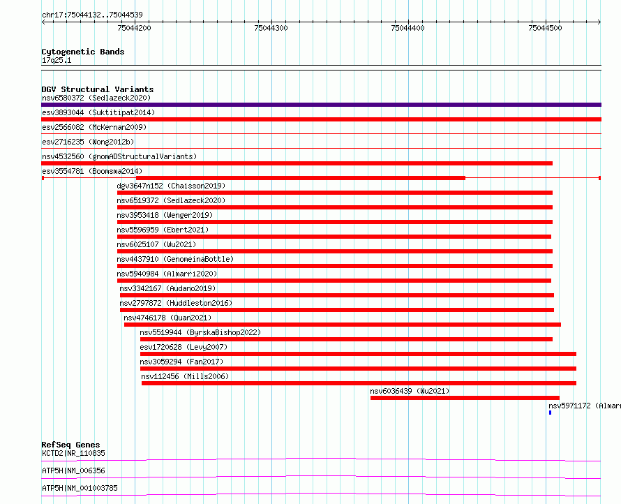 Variant DetailsVariant: esv3554781| Internal ID | 18755857 | | Landmark | | | Location Information | | | Cytoband | 17q25.1 | | Allele length | | Assembly | Allele length | | hg38 | 408 | | hg19 | 408 |