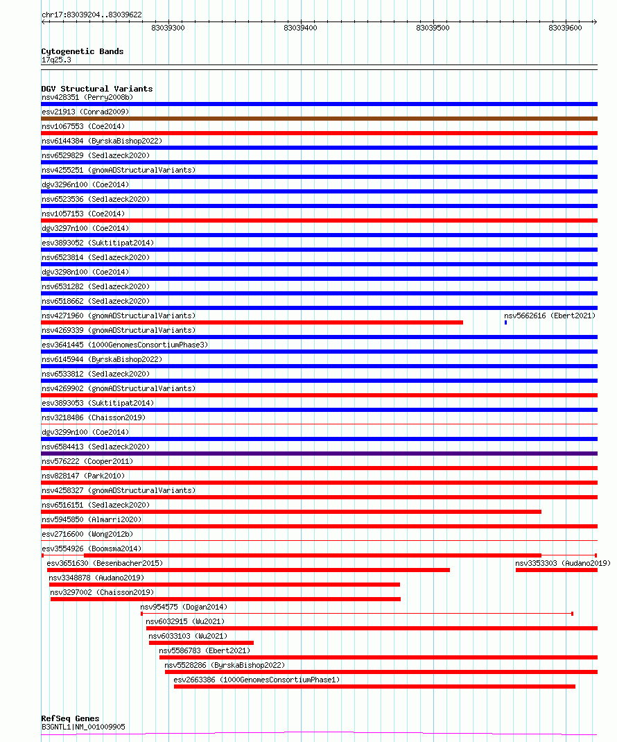 Variant DetailsVariant: esv3554926| Internal ID | 18756002 | | Landmark | | | Location Information | | | Cytoband | 17q25.3 | | Allele length | | Assembly | Allele length | | hg38 | 419 | | hg19 | 419 |