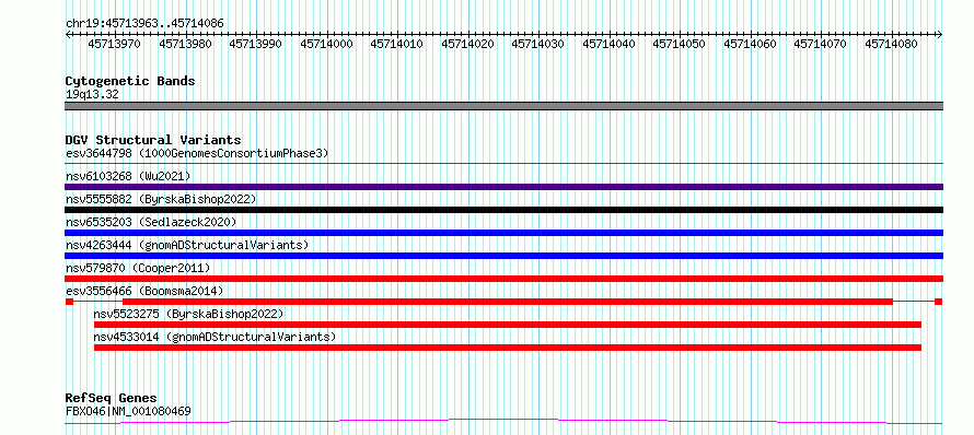 Variant DetailsVariant: esv3556466| Internal ID | 18757542 | | Landmark | | | Location Information | | | Cytoband | 19q13.32 | | Allele length | | Assembly | Allele length | | hg38 | 124 | | hg19 | 124 |