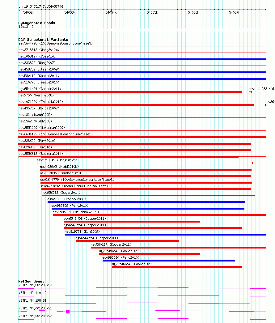 | Variant Type | CNV deletion | Copy Number | | Allele State | | Allele Origin | | Probe Count | | Validation Flag | | Merged Status | M | Merged Variants | | Supporting Variants | essv9755359 | Samples | | Known Genes | VSTM1 | Method | Sequencing | Analysis | | Platform | Illumina HiSeq 2000 | Comments | | Reference | Boomsma_et_al_2014 | Pubmed ID | 23714750 | Accession Number(s) | esv3556612