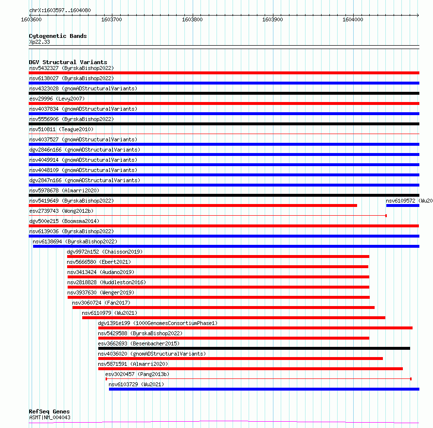 Variant DetailsVariant: esv3558496| Internal ID | 18759572 | | Landmark | | | Location Information | | | Cytoband | Xp22.33 | | Allele length | | Assembly | Allele length | | hg38 | 484 | | hg19 | 484 |