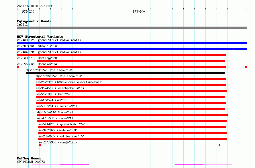 Variant DetailsVariant: esv3558606| Internal ID | 18759682 | | Landmark | | | Location Information | | | Cytoband | Xp22.2 | | Allele length | | Assembly | Allele length | | hg38 | 207 | | hg19 | 207 |