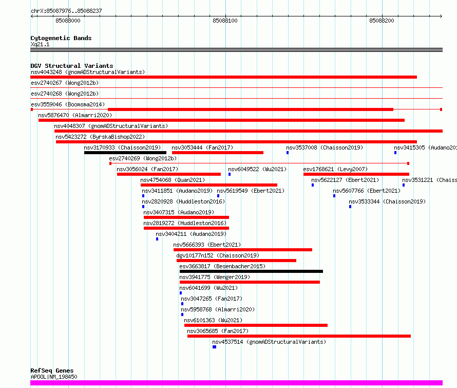 Variant DetailsVariant: esv3559046| Internal ID | 18760122 | | Landmark | | | Location Information | | | Cytoband | Xq21.1 | | Allele length | | Assembly | Allele length | | hg38 | 262 | | hg19 | 262 |