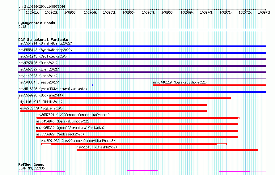 Variant DetailsVariant: esv3559928| Internal ID | 18761004 | | Landmark | | | Location Information | | | Cytoband | 2q12.3 | | Allele length | | Assembly | Allele length | | hg38 | 12755 | | hg19 | 12755 |