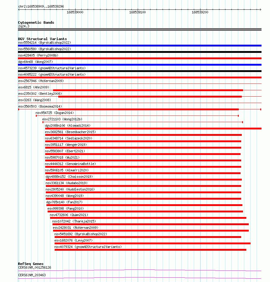 Variant DetailsVariant: esv3560503| Internal ID | 18761579 | | Landmark | | | Location Information | | | Cytoband | 2q24.3 | | Allele length | | Assembly | Allele length | | hg38 | 388 | | hg19 | 388 |