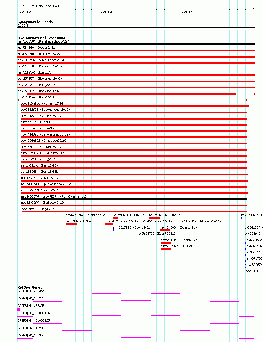 Variant DetailsVariant: esv3560820| Internal ID | 18761896 | | Landmark | | | Location Information | | | Cytoband | 2q33.1 | | Allele length | | Assembly | Allele length | | hg38 | 2918 | | hg19 | 2918 |