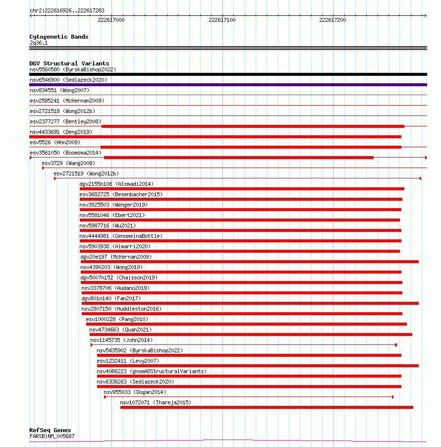 Variant DetailsVariant: esv3561050| Internal ID | 18762126 | | Landmark | | | Location Information | | | Cytoband | 2q36.1 | | Allele length | | Assembly | Allele length | | hg38 | 358 | | hg19 | 358 |