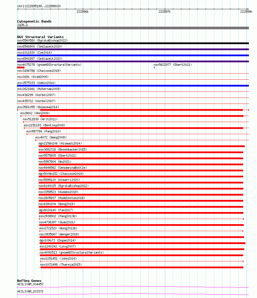 Variant DetailsVariant: esv3561055| Internal ID | 18762131 | | Landmark | | | Location Information | | | Cytoband | 2q36.1 | | Allele length | | Assembly | Allele length | | hg38 | 2822 | | hg19 | 2822 |