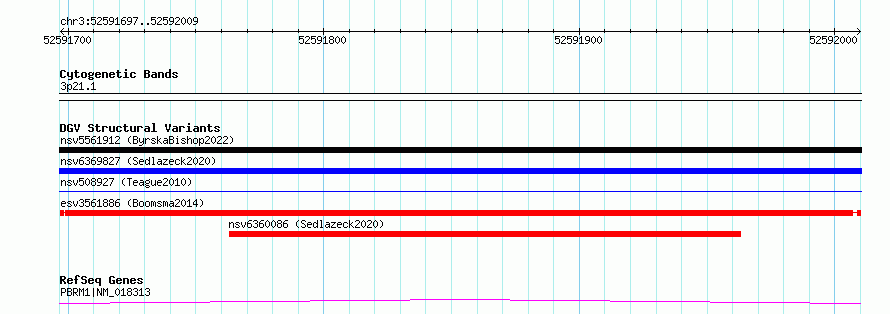 Variant DetailsVariant: esv3561886| Internal ID | 18762962 | | Landmark | | | Location Information | | | Cytoband | 3p21.1 | | Allele length | | Assembly | Allele length | | hg38 | 313 | | hg19 | 313 |