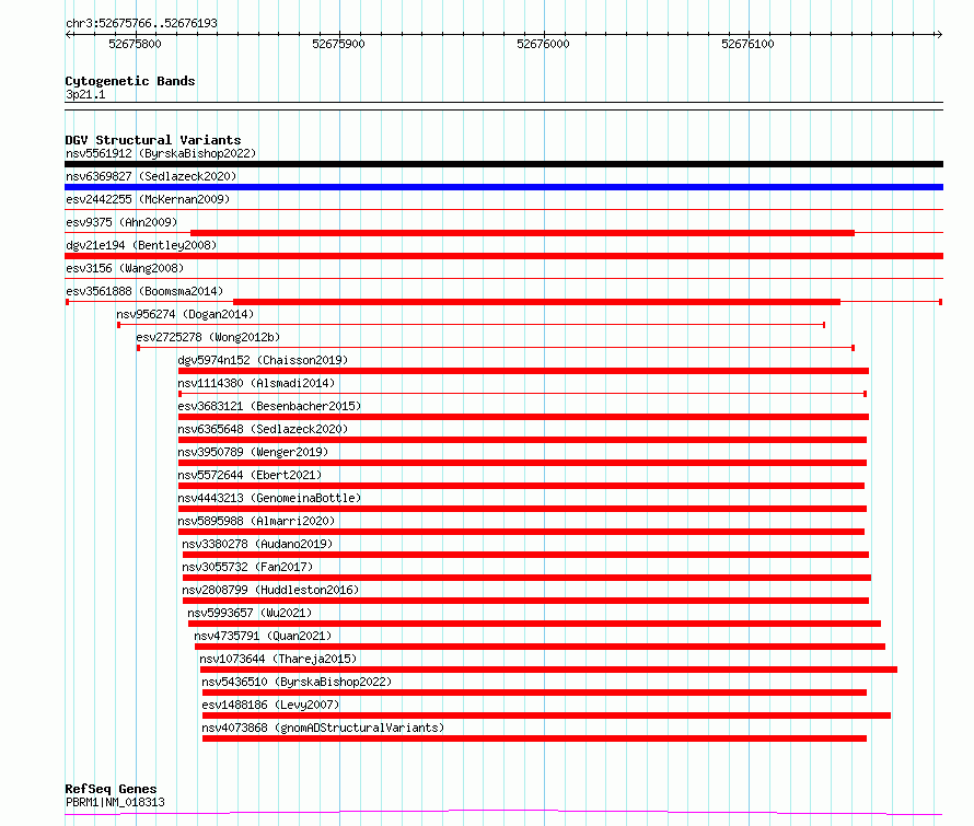 Variant DetailsVariant: esv3561888| Internal ID | 18762964 | | Landmark | | | Location Information | | | Cytoband | 3p21.1 | | Allele length | | Assembly | Allele length | | hg38 | 428 | | hg19 | 428 |