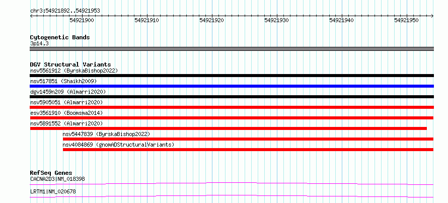 Variant DetailsVariant: esv3561910| Internal ID | 18762986 | | Landmark | | | Location Information | | | Cytoband | 3p14.3 | | Allele length | | Assembly | Allele length | | hg38 | 62 | | hg19 | 62 |
