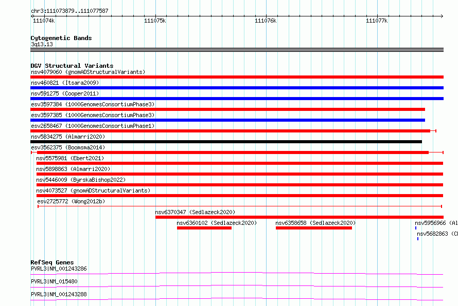Variant DetailsVariant: esv3562375| Internal ID | 18763451 | | Landmark | | | Location Information | | | Cytoband | 3q13.13 | | Allele length | | Assembly | Allele length | | hg38 | 3709 | | hg19 | 3709 |