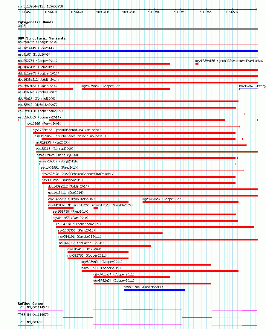 Variant DetailsVariant: esv3563069| Internal ID | 18417459 | | Landmark | | | Location Information | | | Cytoband | 3q28 | | Allele length | | Assembly | Allele length | | hg38 | 9247 | | hg19 | 9247 |
