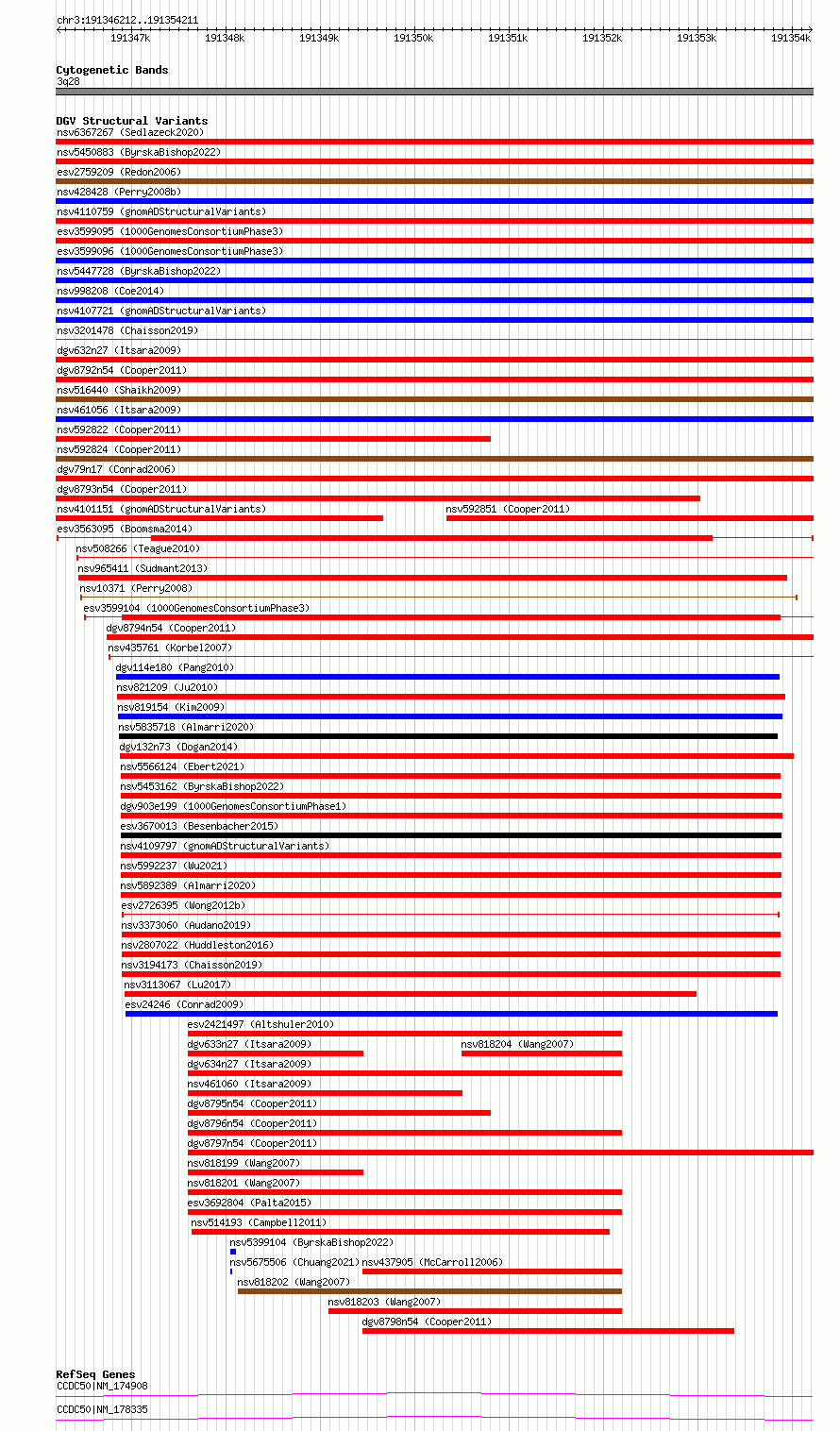 Variant DetailsVariant: esv3563095| Internal ID | 18764171 | | Landmark | | | Location Information | | | Cytoband | 3q28 | | Allele length | | Assembly | Allele length | | hg38 | 8000 | | hg19 | 8000 |