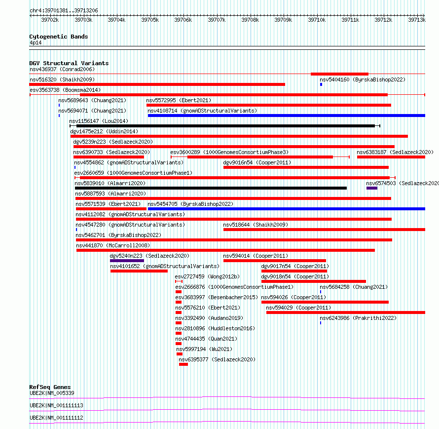 | | Variant Type | CNV deletion | | Copy Number | | | Allele State | | | Allele Origin | | | Probe Count | | | Validation Flag | | | Merged Status | M | | Merged Variants | | | Supporting Variants | essv9762485 | | Samples | | | Known Genes | UBE2K | | Method | Sequencing | | Analysis | | | Platform | Illumina HiSeq 2000 | | Comments | | | Reference | Boomsma_et_al_2014 | | Pubmed ID | 23714750 | | Accession Number(s) | esv3563738