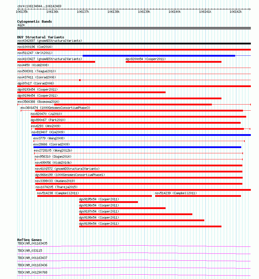 | | Variant Type | CNV deletion | | Copy Number | | | Allele State | | | Allele Origin | | | Probe Count | | | Validation Flag | | | Merged Status | M | | Merged Variants | | | Supporting Variants | essv9763135 | | Samples | | | Known Genes | TBCK | | Method | Sequencing | | Analysis | | | Platform | Illumina HiSeq 2000 | | Comments | | | Reference | Boomsma_et_al_2014 | | Pubmed ID | 23714750 | | Accession Number(s) | esv3564388