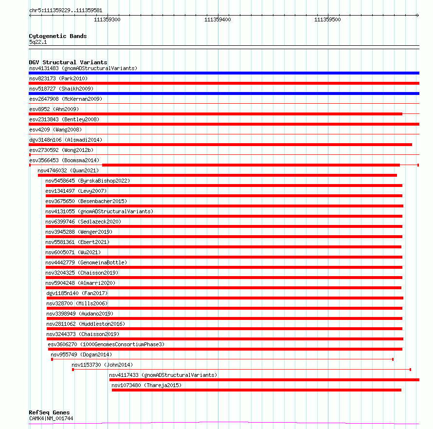 Variant DetailsVariant: esv3566453| Internal ID | 18767529 | | Landmark | | | Location Information | | | Cytoband | 5q22.1 | | Allele length | | Assembly | Allele length | | hg38 | 353 | | hg19 | 353 |