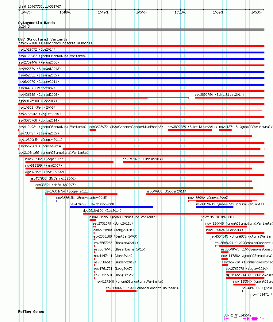 Variant DetailsVariant: esv3567263Internal ID | 18421653 | Landmark | | Location Information | | Cytoband | 6p24.3 | Allele length | Assembly | Allele length | hg38 | 64033 | hg19 | 64033 |