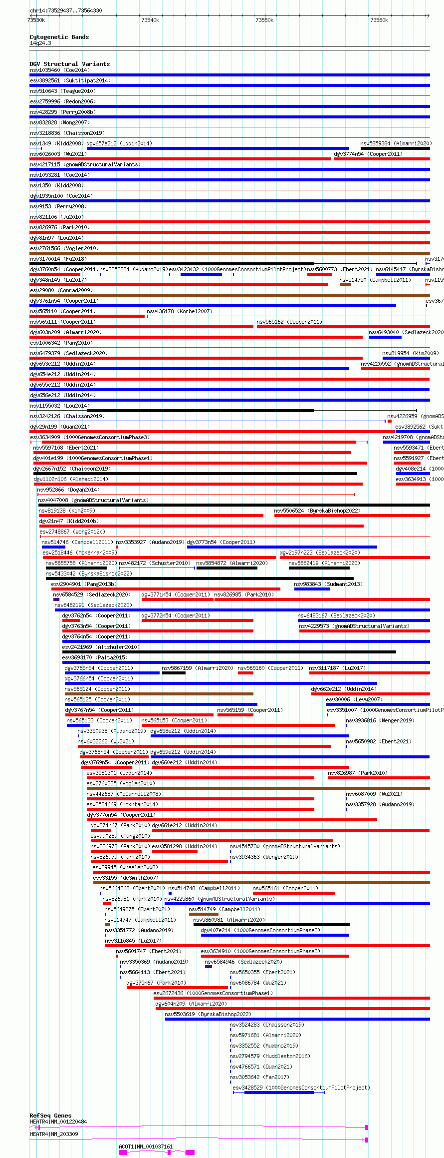 Variant DetailsVariant: esv3568121 | Internal ID | 18696319 | | Landmark | | | Location Information | | | Cytoband | 14q24.3 | | Allele length | | Assembly | Allele length | | hg38 | 34894 | | hg19 | 34894 |