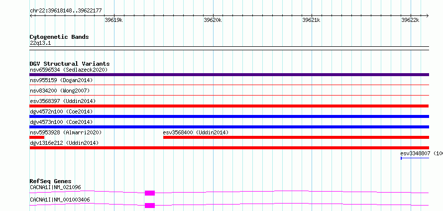 Variant DetailsVariant: esv3568396 | Internal ID | 18696594 | | Landmark | | | Location Information | | | Cytoband | 22q13.1 | | Allele length | | Assembly | Allele length | | hg38 | 4030 | | hg19 | 4030 |