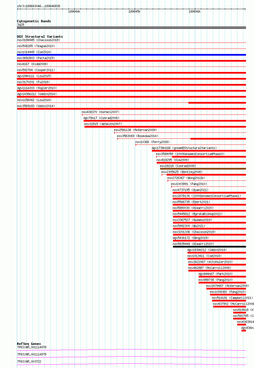 Variant DetailsVariant: esv3569183| Internal ID | 18697381 | | Landmark | | | Location Information | | | Cytoband | 3q28 | | Allele length | | Assembly | Allele length | | hg38 | 3793 | | hg19 | 3793 |