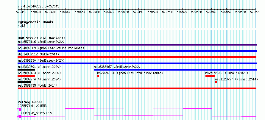 Variant DetailsVariant: esv3569435| Internal ID | 18697633 | | Landmark | | | Location Information | | | Cytoband | 4q12 | | Allele length | | Assembly | Allele length | | hg38 | 16294 | | hg19 | 16294 |