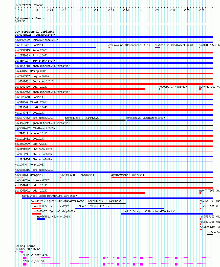 Variant DetailsVariant: esv3569892| Internal ID | 18698090 | | Landmark | | | Location Information | | | Cytoband | 5p15.33 | | Allele length | | Assembly | Allele length | | hg38 | 12990 | | hg19 | 12990 |