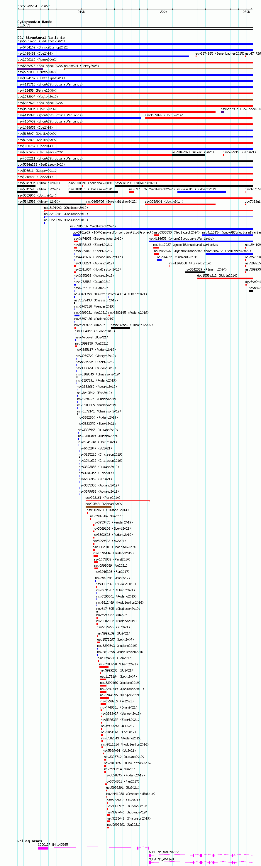 Variant DetailsVariant: esv3569900| Internal ID | 18698098 | | Landmark | | | Location Information | | | Cytoband | 5p15.33 | | Allele length | | Assembly | Allele length | | hg38 | 28380 | | hg19 | 28380 |