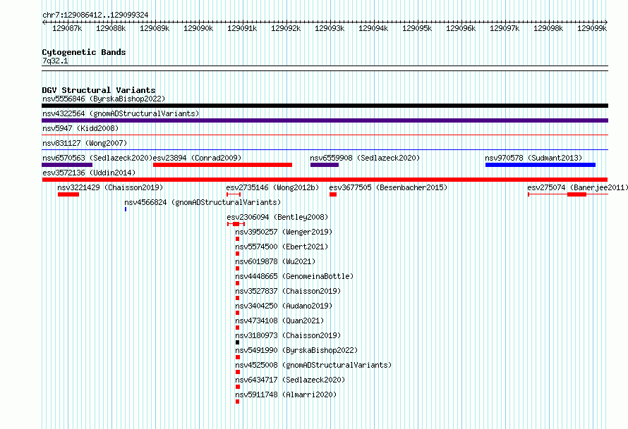 Variant DetailsVariant: esv3572136| Internal ID | 18700334 | | Landmark | | | Location Information | | | Cytoband | 7q32.1 | | Allele length | | Assembly | Allele length | | hg38 | 12913 | | hg19 | 12913 |