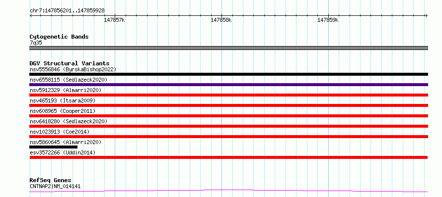 Variant DetailsVariant: esv3572266| Internal ID | 18700464 | | Landmark | | | Location Information | | | Cytoband | 7q35 | | Allele length | | Assembly | Allele length | | hg38 | 3728 | | hg19 | 3728 |