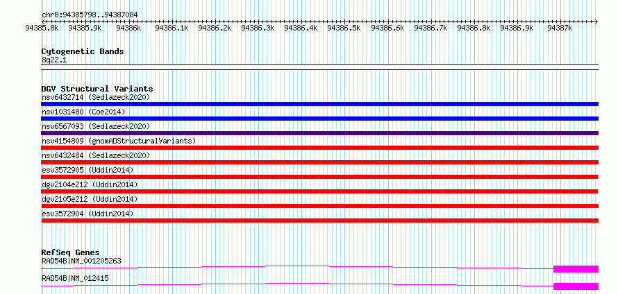 | | Variant Type | CNV loss | | Copy Number | | | Allele State | | | Allele Origin | | | Probe Count | | | Validation Flag | | | Merged Status | M | | Merged Variants | dgv2104e212 | | Supporting Variants | essv9789397, essv9789418, essv9789425, essv9789394, essv9789392, essv9789407, essv9789415, essv9789419, essv9789399, essv9789410, essv9789406, essv9789412, essv9789396, essv9789395, essv9789417, essv9789414, essv9789401, essv9789398, essv9789409, essv9789403, essv9789393, essv9789416, essv9789424, essv9789408, essv9789421, essv9789405, essv9789413, essv9789420, essv9789404, essv9789402 | | Samples | 400927BD, 401005BL, 400821FE, 401299ST, 400191MP, 400245SJ, 401136LB, 400482MD, 401550SP, 401791FG, 401027KW, 400838AM, 401519SA, 401942MP, 400686BM, 401795SP, 401112LG, 401359HF, 401361GG, 401295HB, 400069CN, 401177SL, 400508RD, 401628GC, 400213DB, 400300SD, 400209BS, 400138LA, 401497PR, 401482CB | | Known Genes | RAD54B | | Method | SNP array | | Analysis | We used four separate algorithms to detect CNVs; Affymetrix Chromosome Analysis Suite (ChAS), iPattern, Nexus and Partek. Our primary analysis was performed based on ChAS CNV calls, which were then supported using the remaining three algorithms to construct a confidence set of CNVs. For all algorithms, we have used 8 probes and >1kb as a base line cutoff for CNV detection. | | Platform | Affymetrix CytoScan HD 2.7M array | | Comments | | | Reference | Uddin_et_al_2014 | | Pubmed ID | 25503493 | | Accession Number(s) | esv3572902