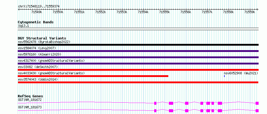 Variant DetailsVariant: esv3574043 | Internal ID | 18702241 | | Landmark | | | Location Information | | | Cytoband | Xq13.1 | | Allele length | | Assembly | Allele length | | hg38 | 11256 | | hg19 | 11256 |