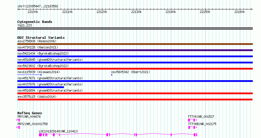 Variant DetailsVariant: esv3575115| Internal ID | 18703313 | | Landmark | | | Location Information | | | Cytoband | Yq11.223 | | Allele length | | Assembly | Allele length | | hg38 | 68146 | | hg19 | 68146 |