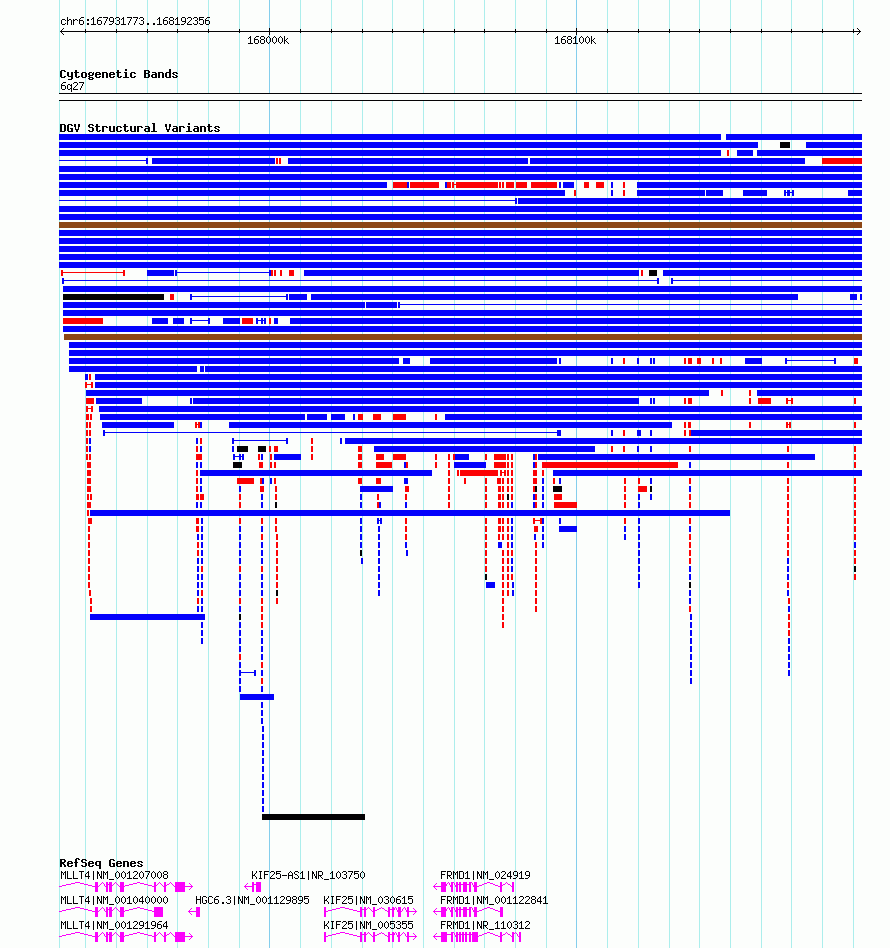 | | Variant Type | CNV gain | | Copy Number | | | Allele State | | | Allele Origin | | | Probe Count | | | Validation Flag | | | Merged Status | M | | Merged Variants | dgv1853e212 | | Supporting Variants | essv9782638, essv9782637 | | Samples | 401074CM, 401281BP | | Known Genes | FRMD1, HGC6.3, KIF25, KIF25-AS1, MLLT4 | | Method | SNP array | | Analysis | We used four separate algorithms to detect CNVs; Affymetrix Chromosome Analysis Suite (ChAS), iPattern, Nexus and Partek. Our primary analysis was performed based on ChAS CNV calls, which were then supported using the remaining three algorithms to construct a confidence set of CNVs. For all algorithms, we have used 8 probes and >1kb as a base line cutoff for CNV detection. | | Platform | Affymetrix CytoScan HD 2.7M array | | Comments | | | Reference | Uddin_et_al_2014 | | Pubmed ID | 25503493 | | Accession Number(s) | esv3576260