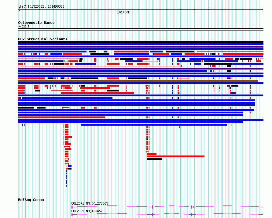 Variant DetailsVariant: esv3576409| Internal ID | 18704607 | | Landmark | | | Location Information | | | Cytoband | 7q22.1 | | Allele length | | Assembly | Allele length | | hg38 | 173505 | | hg19 | 173505 |