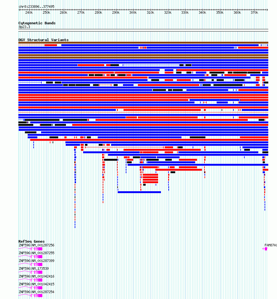 Variant DetailsVariant: esv3576500| Internal ID | 18704698 | | Landmark | | | Location Information | | | Cytoband | 8p23.3 | | Allele length | | Assembly | Allele length | | hg38 | 143600 | | hg19 | 143600 |