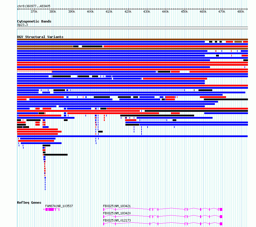 Variant DetailsVariant: esv3576501| Internal ID | 18704699 | | Landmark | | | Location Information | | | Cytoband | 8p23.3 | | Allele length | | Assembly | Allele length | | hg38 | 122429 | | hg19 | 122429 |